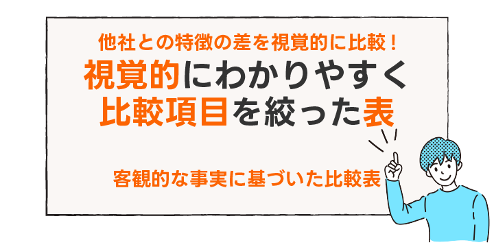 多くの項目を比較する際、お客様が一目で比較結果を視認できることが重要になってきます。このような場合、比較結果を文字 ではなく記号で表現することで、一気に視認性を高めています